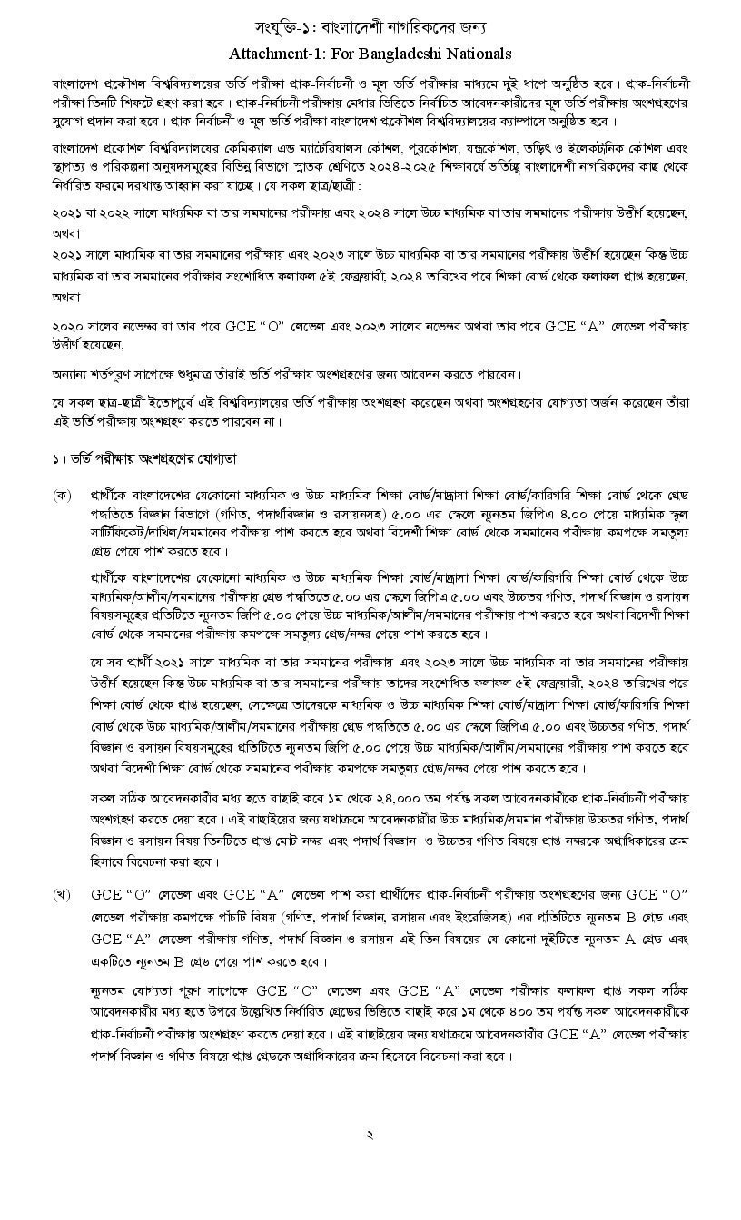 Candidates meeting these criteria will be allowed to apply for the BUET admission process. Candidates should carefully review the eligibility requirements and ensure that they fulfill all conditions before submitting their applications.