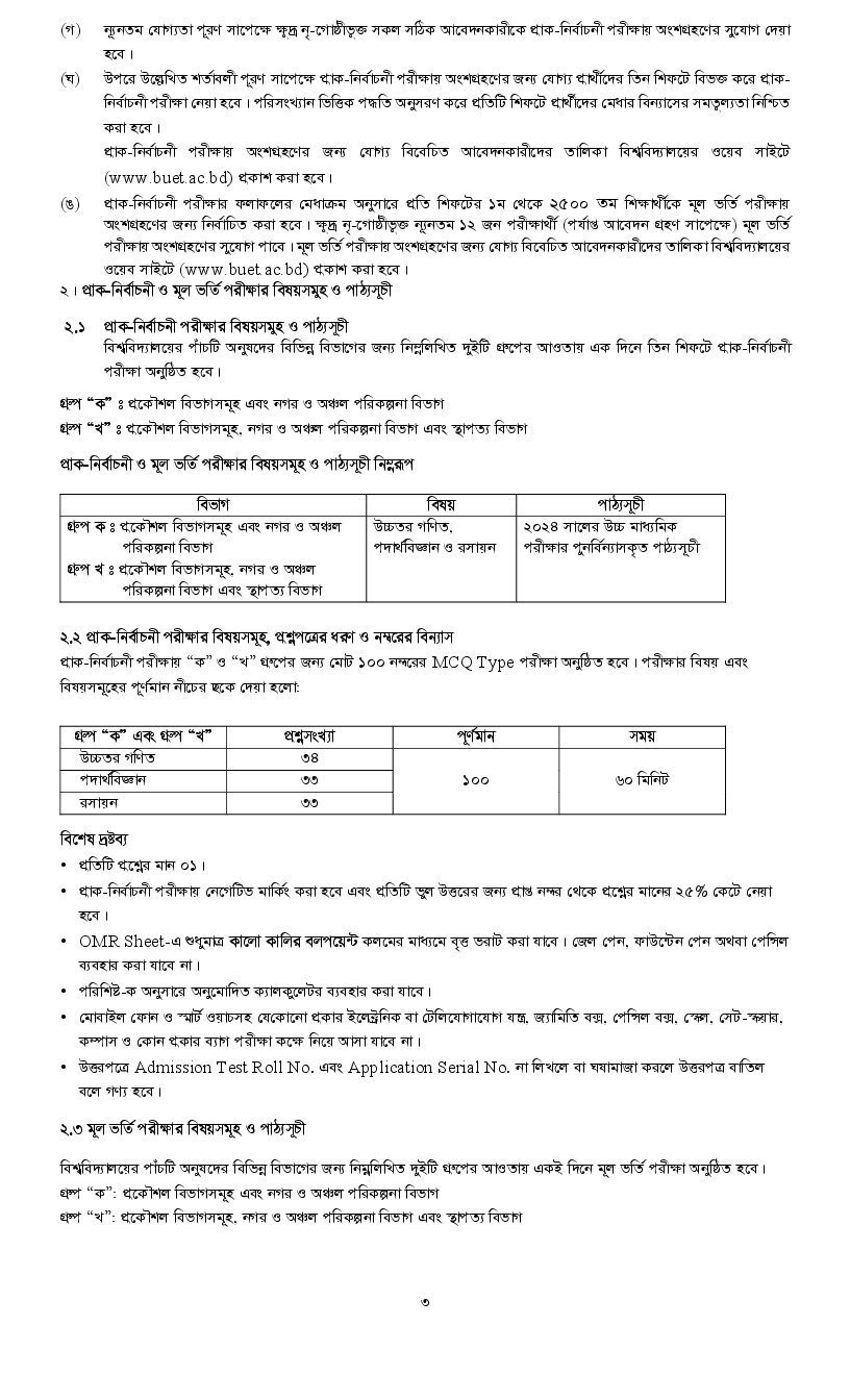 Only those who pass the preliminary test will be eligible to participate in the main admission test, which will determine their final selection. Both phases of the admission test will be held on the BUET campus.